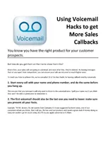 Today with the use of caller ID many people are screening calls. How do you make the prospect call you back, and promptly. This is the important question. A weak script yields a weak response.